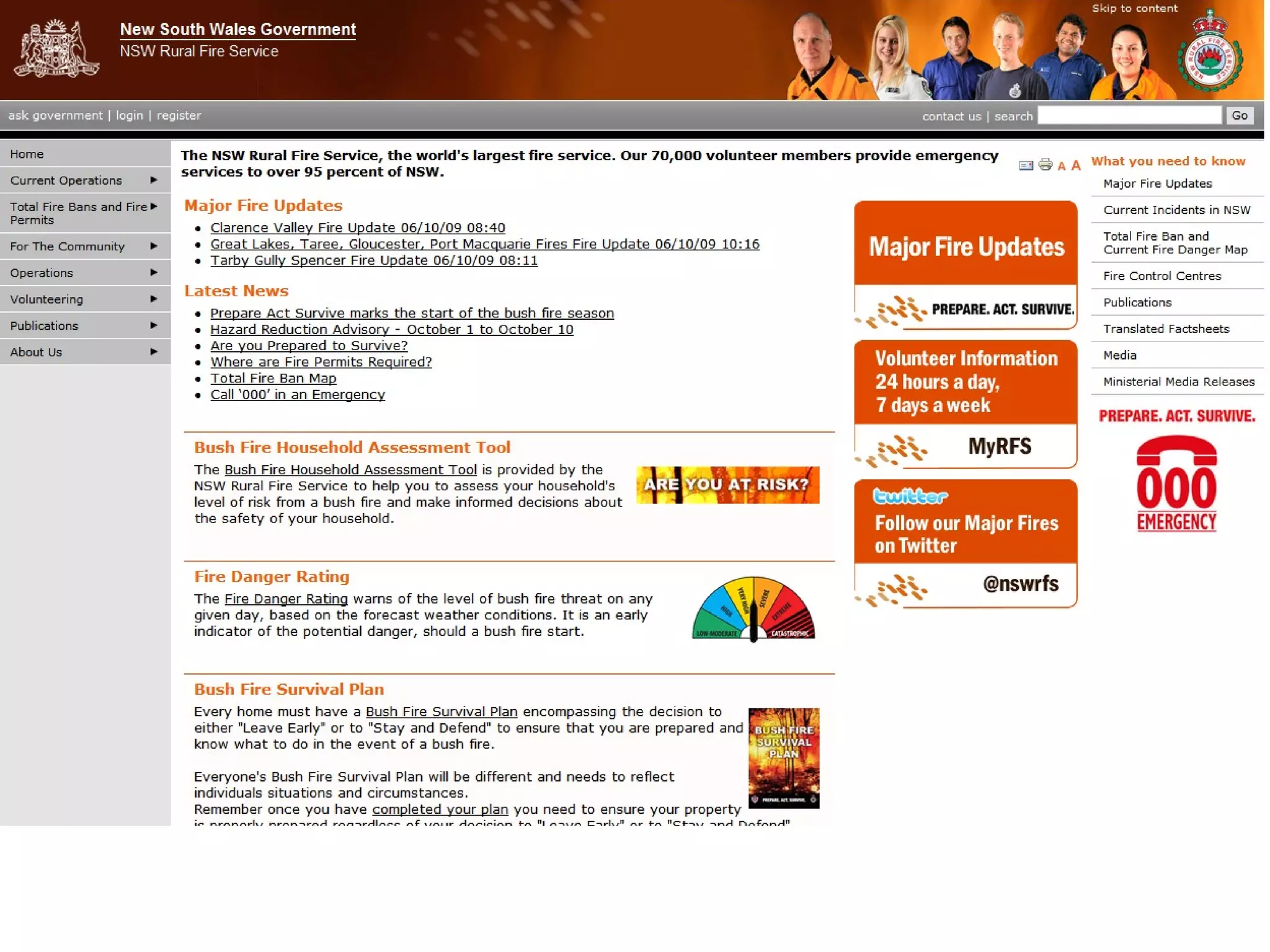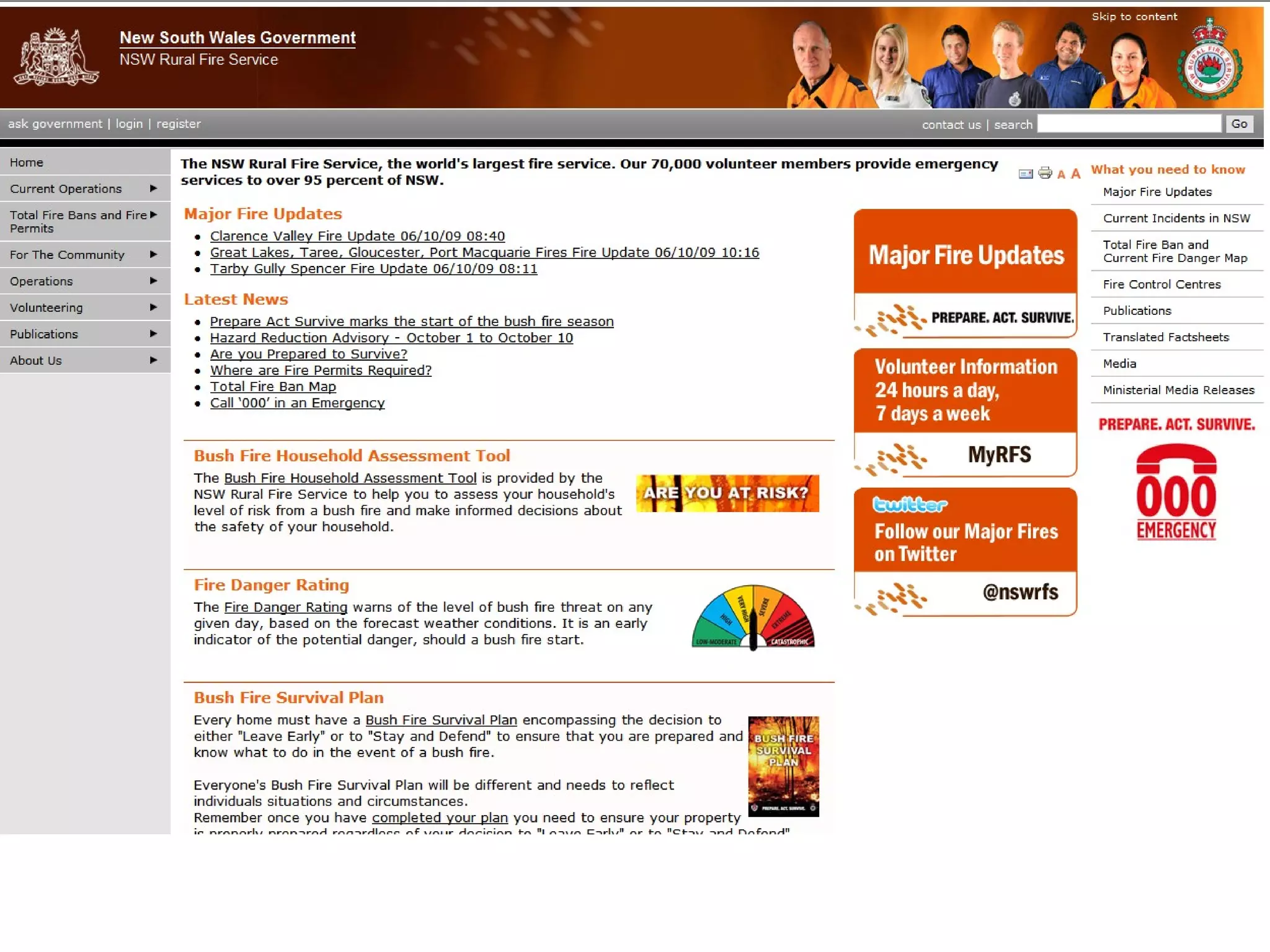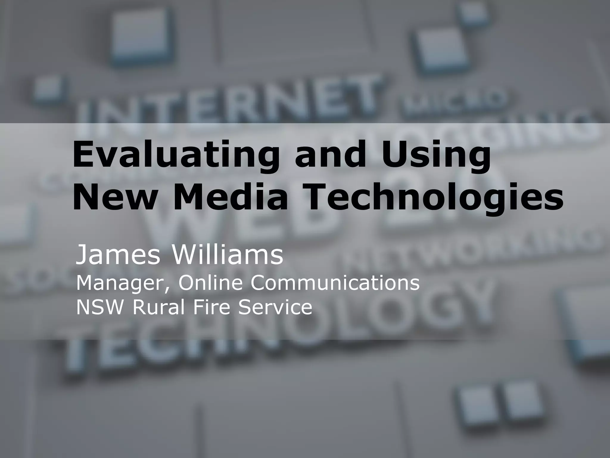 The document discusses the NSW Rural Fire Service's use of new media technologies to communicate emergency information. It outlines the platforms and services used, including 3 websites, podcasting, video streaming, and social media. It also discusses establishing guidelines for using new media and building official communication channels before emergencies occur to fill information voids. The results were a single source of truth for information, wider reach of messaging, improved speed and accuracy of messages, and increased social media reach.
