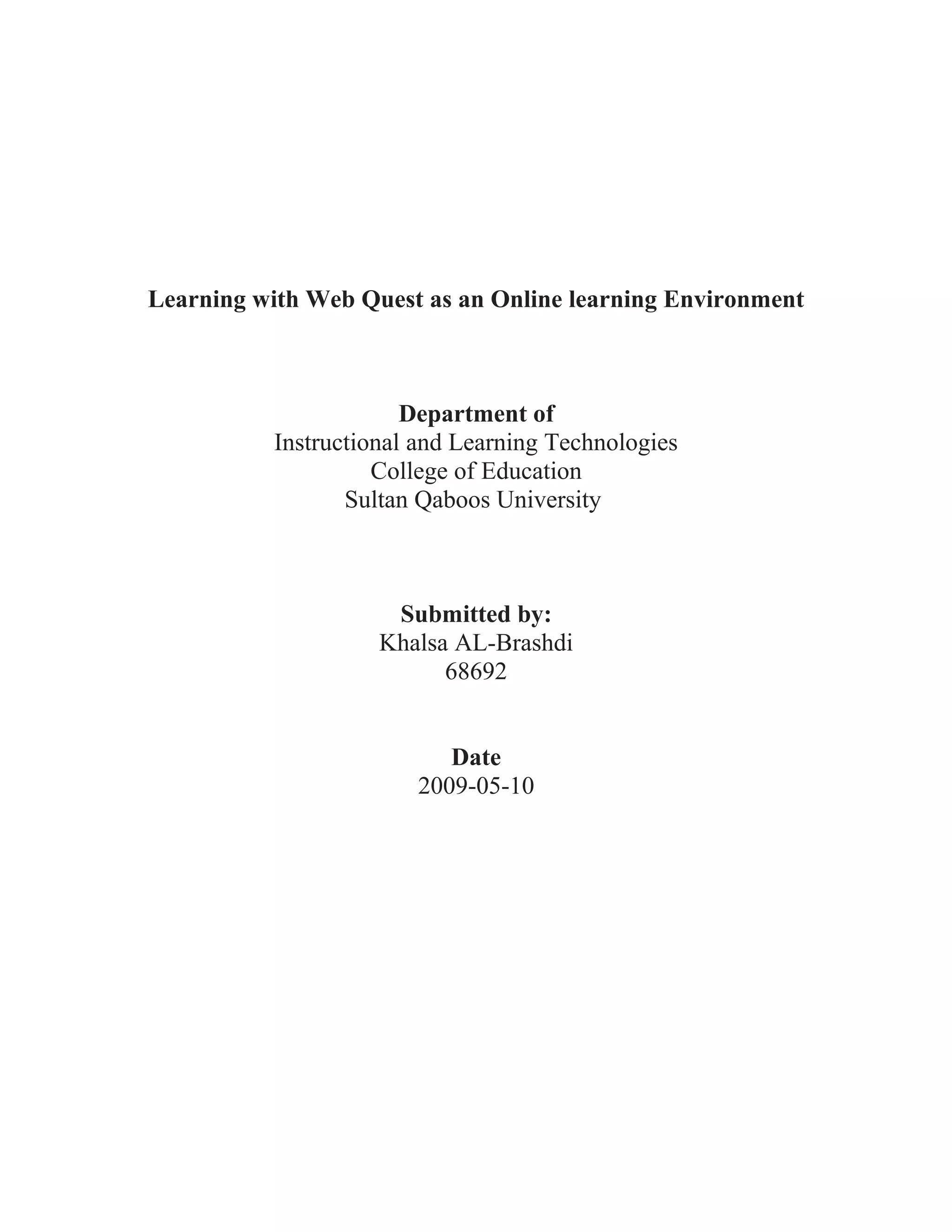 The document discusses the effectiveness of web quests as an online learning environment, focusing on their impact on users' attitudes and skills. Research findings indicate that learners generally have positive perceptions of web quests, noting benefits in motivation and structure, although concerns remain about their attractiveness and the need for collaboration. The study also emphasizes the necessity for further research with larger samples to better understand the educational value of web quests.