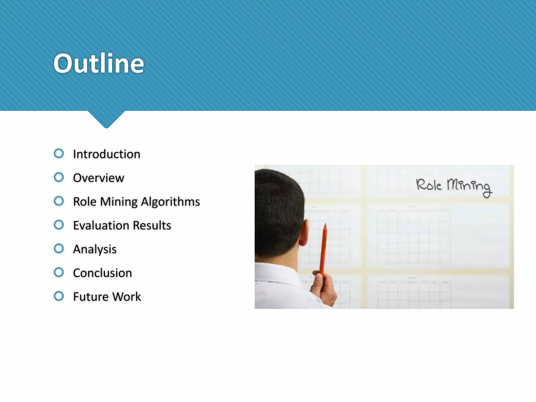 The document presents a comprehensive study comparing nine role mining algorithms, emphasizing their outputs and effectiveness in generating user-role relationships from system configuration data. It introduces two new methods for dataset generation and evaluates the algorithms based on metrics like the complexity of role-based access control (RBAC) states and the quality of roles produced. The analysis highlights strengths and weaknesses of each algorithm, suggesting areas for future improvement, including handling noisy data and incorporating attribute information.