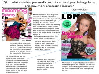 This document discusses how the media product represents particular social groups. It represents fans of house music through its focus on festivals, gigs, and artists like David Guetta. The target age group is 15-25 year olds, as reflected in the features. Both genders and people of different social classes, races and sexualities are represented through the inclusive choice of colors, images, and diversity of music festival and gig content.