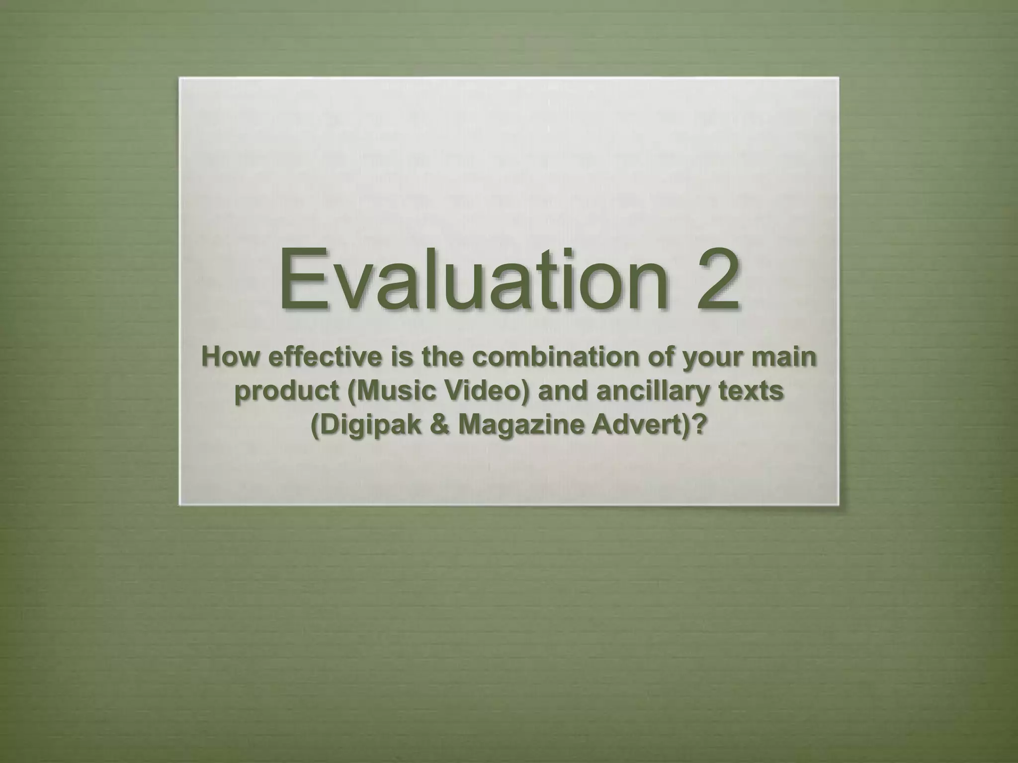 The document discusses the effectiveness of combining a music video with supplementary promotional materials like a CD digipak and magazine advertisement. The student created these three products for the song "Jealous" by Labrinth while maintaining a consistent house style across all items. This included using recurring fonts, colors, and imagery focused on fashion trends. Feedback indicates the products work well together through shared elements that create synergy while still allowing each item to remain unique. Maintaining a house style and representing the song's emotion of love helped ensure the products effectively promoted both the artist and song.