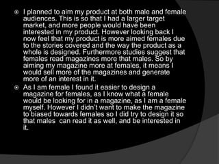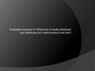 Ipc media or Bauer would be good distributors for the magazine as they distribute similar magazines like Grazia and Closer. Using a major distributor would make the magazine available in more locations but the creator may lose some creative control. Distributing the magazine independently would be difficult due to printing and distribution costs so a distributor is preferable, at least at first to test the market for the magazine. The magazine should be trialled in major cities first where there is more potential for sales.