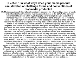 Georgie Thorrold created a music magazine called "Soul Magazine" that follows conventions of real music magazines. The magazine represents young adult rock fans through its bold colors, natural band photos from gigs, and inclusion of student photos. IPC Media, a large UK publishing house known for the NME magazine, would be a good fit to distribute Soul Magazine through traditional and online outlets. The target audience is teens and adults interested in indie rock music. Georgie addressed this audience by designing the magazine to look modern yet familiar to NME readers, and by including photography and content relevant to fans of the genre. Through creating the magazine, Georgie learned new skills with Photoshop and other technologies while improving on conventions from