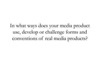 This document analyzes how the author's media product uses and challenges conventions of real music magazines.