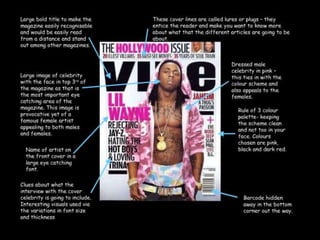 This document summarizes Louise Smith's media evaluation for her indie magazine titled "Ind:e". The summary discusses how the magazine follows conventions of real media products in its front cover, contents page, and double page spread layouts. It also describes the magazine's title, fonts, color scheme, and representation of the indie genre and target audience through the models' clothing, hairstyles, and poses. Finally, it proposes that Bauer Media could potentially distribute the magazine since they produce similar rock/indie magazines and covering the indie genre could broaden their audience.