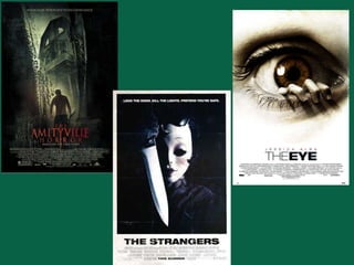 The document discusses conventions of teaser trailers, horror film trailers, and horror film posters. It then analyzes how the teaser trailer, titled "Jigsaw", follows these conventions. The trailer is under a minute, uses cryptic footage and music without dialogue to generate curiosity, and leaves the viewer with questions about the storyline without giving too much away. The trailer also uses fast pacing, jump cuts, and sound effects similar to other horror trailers. The poster features a dark, striking image and prominently displayed title consistent with horror film poster conventions.