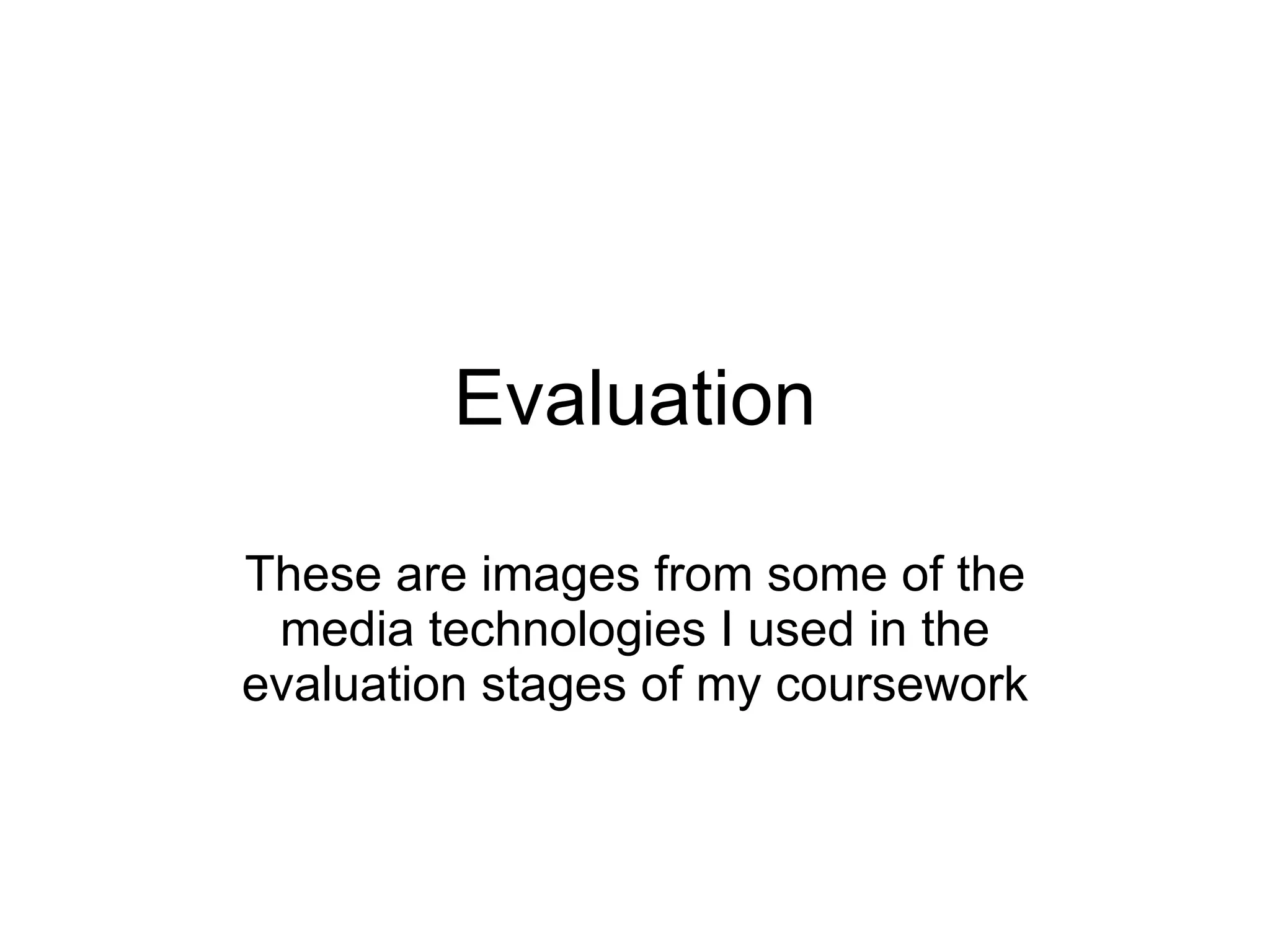 YouTube, Facebook, Flipshare, and SlideShare were used to evaluate different versions of a teaser trailer and gather feedback from various audiences. Facebook proved especially helpful as the creator was able to upload content and receive feedback from many teenagers, the target audience. Flipshare allowed for quick collection of feedback clips. SlideShare provided a space-efficient way to share significant information on a blog.