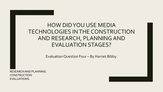 The document discusses how media technologies were used at different stages of the student's media production project.