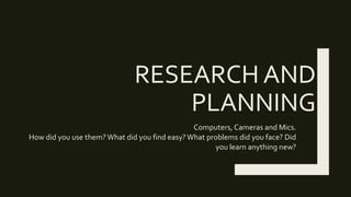 During the research and planning stage, the student used blogs, Prezi, YouTube, and websites to organize information and findings. Cameras, microphones, and movie editing software were used to record interviews, presentations, and capture feedback.