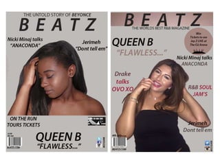 3) The double-page spread interviews Beyoncé in different fonts. Feedback noted it could better represent the R&B genre through improved images.