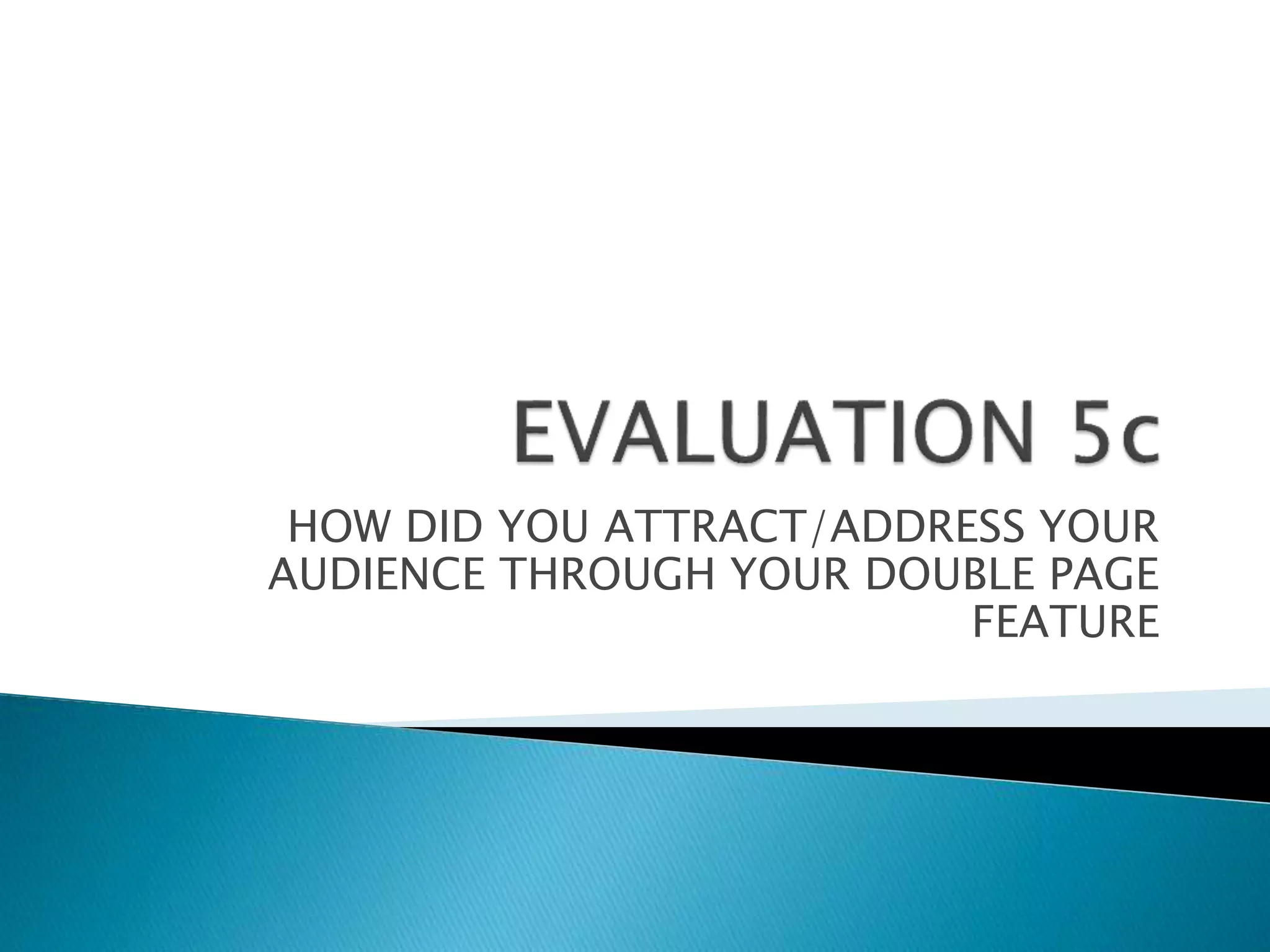 The double page feature used an image of an attractive female model as the main focus to attract readers, following Naomi Wolf's theory. The model had a soft, inviting smile intended to encourage readers to continue reading the article. The feature met all four uses and gratifications theory by being educational, providing information as a form of escapism, and entertaining readers.