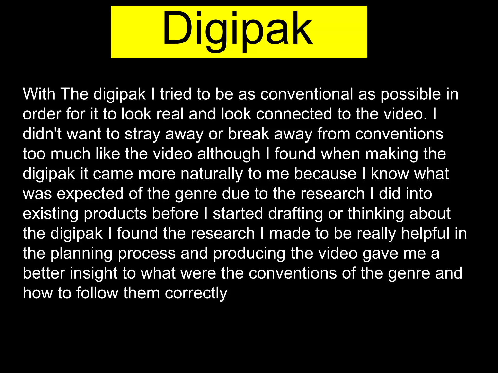 The document discusses the design process for a digipak for a hip hop album. It aimed to follow conventions of existing digipaks through research. Conventions followed include using the artist name, album name, tracklist, parental advisory sign, barcodes, and record label logos. Color schemes and fonts are consistent across the front, back, spine and disc to create cohesion. Some conventions were broken such as adding age ratings, but overall it strives to appear like a professionally designed real product.