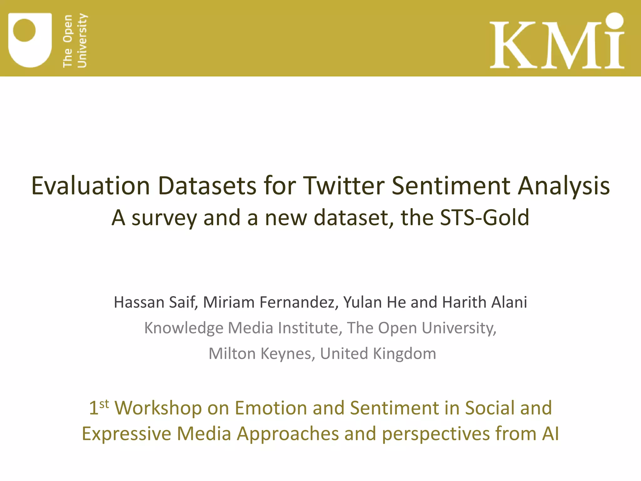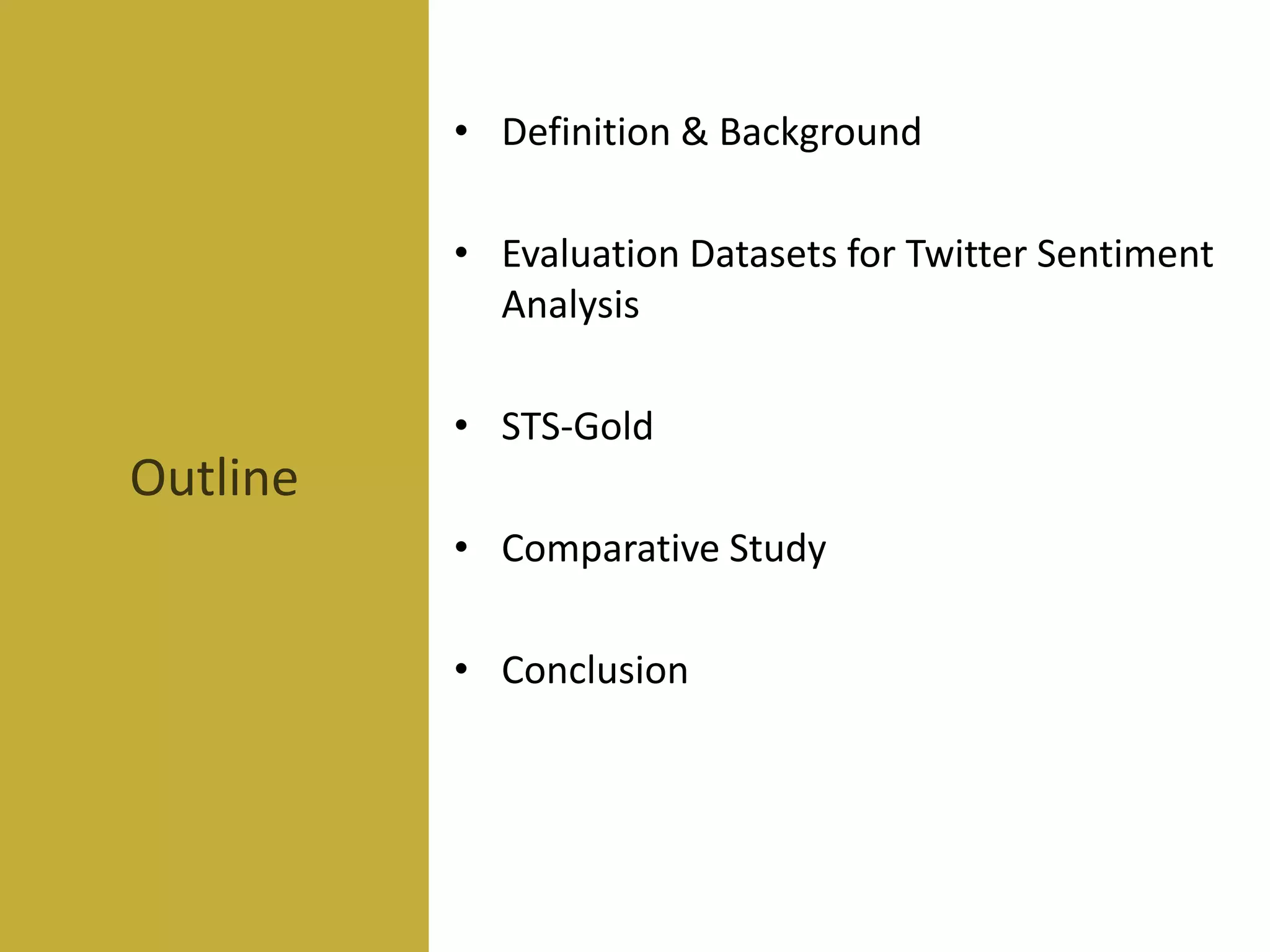 This document reviews evaluation datasets for Twitter sentiment analysis, introducing a new dataset called STS-Gold. It discusses various supervised and unsupervised sentiment analysis approaches, highlighting the limitations of existing datasets focusing primarily on tweet-level evaluations. The findings suggest that while there is a correlation between vocabulary size and tweet count, dataset sparsity negatively impacts classification performance.