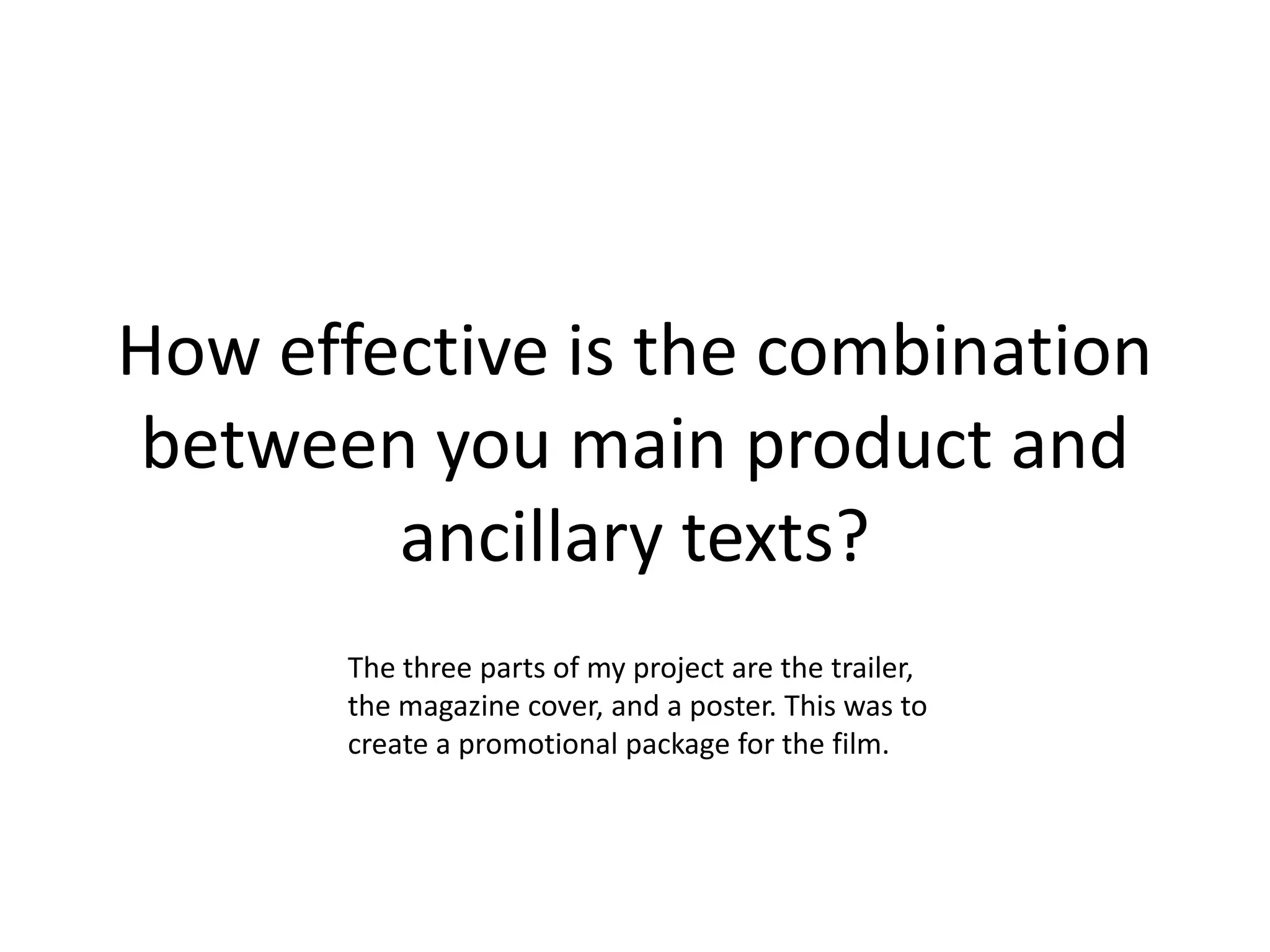 This document discusses the promotional package created for a horror film, including a trailer, magazine cover, and poster. The key elements are: