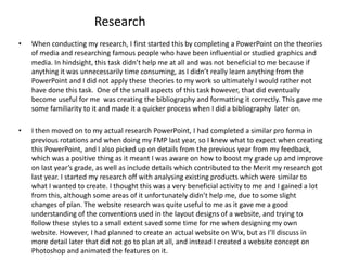 Tommy analyzed his time management throughout the project. He admits that he did not manage his time well and lost focus due to distractions like friends and phone. Specifically, he fell behind on daily development diaries which negatively impacted his work. While his time management was better early on with research PowerPoints, it became poor during production. To improve, he should have stuck more closely to a schedule and reported back daily to keep on track.