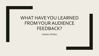 The filmmaker received feedback from audience questionnaires after a premiere screening of their horror film. The feedback indicated that the editing transitions could be improved as they were too obvious and did not flow well. However, the sounds used in the film were effective at creating tension and suspense based on the filmmaker's research of horror conventions. Some of the lighting and props also received positive feedback for helping set the dark, low-key tone typical of horror films. Feedback on promotional materials like posters and a double-page spread helped the filmmaker refine the visual elements to better capture horror aesthetics and conventions.