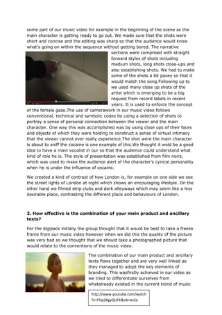 3) The combination of the music video and ancillary texts is effective as they maintain a consistent brand and mood through visual continuity between the products.