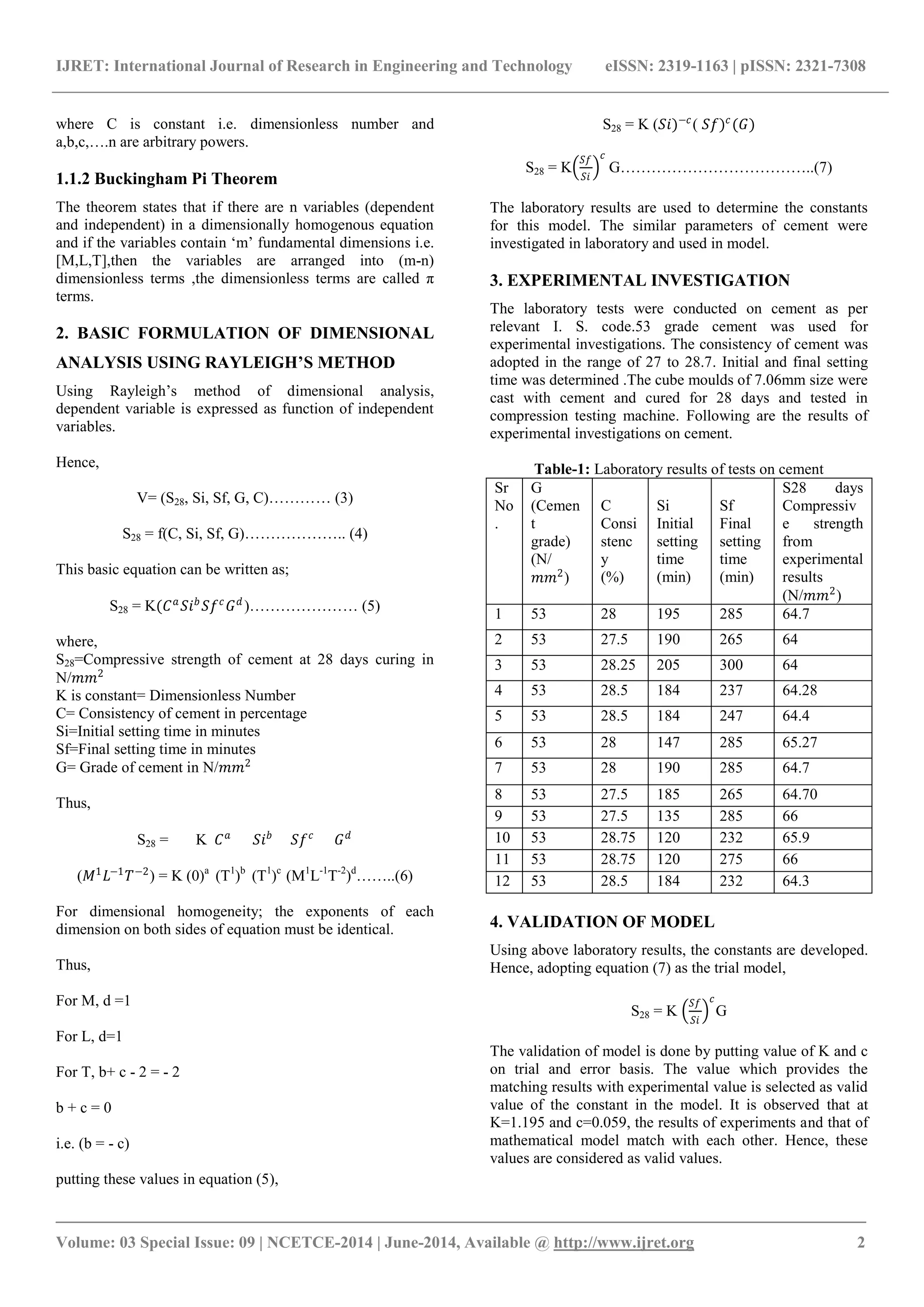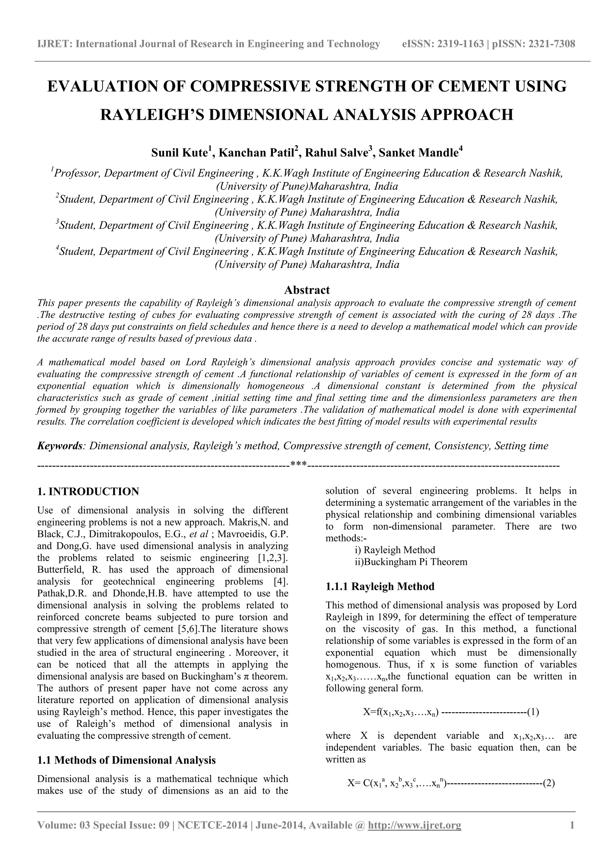 The paper evaluates the use of Rayleigh’s dimensional analysis approach to estimate the compressive strength of cement, aiming to provide timely results without the traditional 28-day curing requirement. A mathematical model is developed, validated against experimental data, showing a strong correlation with results in compressive strength analysis. The proposed method allows for quicker project completion and cost efficiency in cement-related applications.