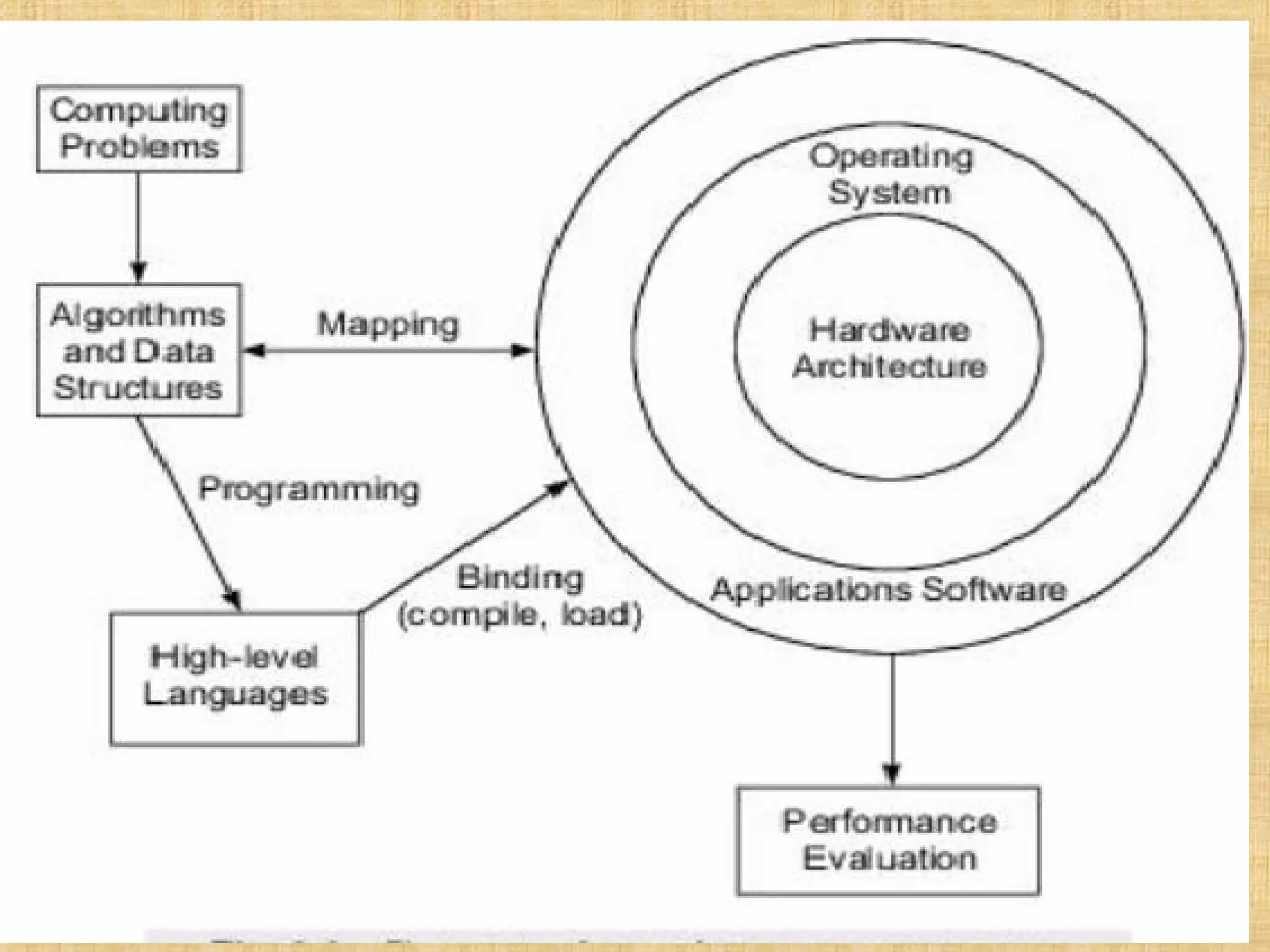 The document discusses advanced computer architecture, focusing on the integration of hardware, software, and programming in modern computers, which are driven by complex problem-solving needs in various fields. It highlights the evolution of computer architecture from sequential to parallel processing and the influence of performance factors such as instruction count, cycles per instruction, and clock rates on overall efficiency. Additionally, it addresses the importance of compilers and software tools for effective parallel programming and the challenges faced in optimizing system performance.
