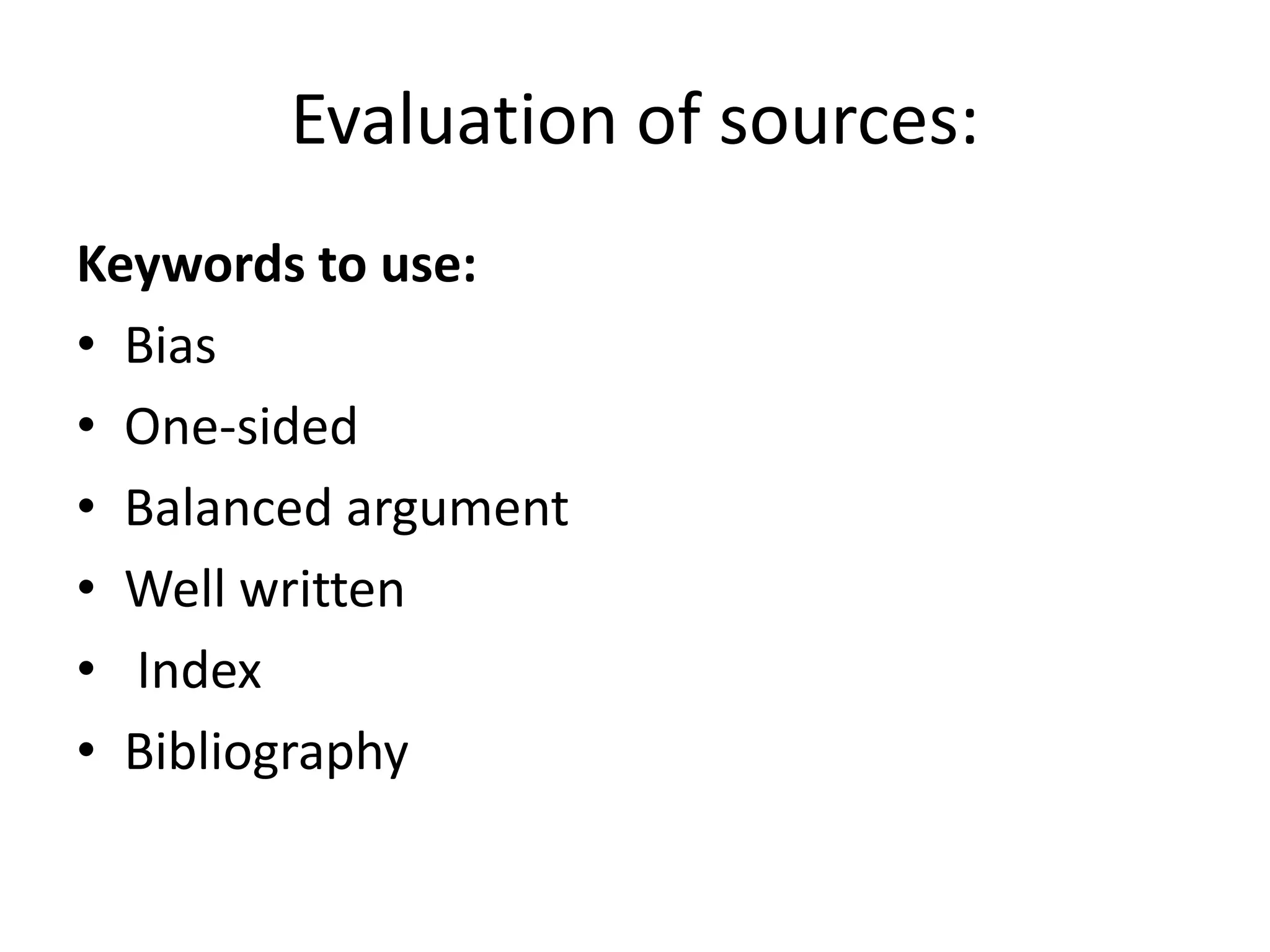 The document provides guidance on evaluating sources for an exam. Students should evaluate sources based on their bias, arguments, writing quality, and inclusion of references. For higher-level exams, evaluate 3 sources, and for ordinary level exams, evaluate 2 to 3 sources. The purpose is to explain to the examiner which sources were most or least useful and why, including whether they were primary or secondary sources, how helpful they were, which was most helpful and why, what was learned from each, and if books were well structured with an index.