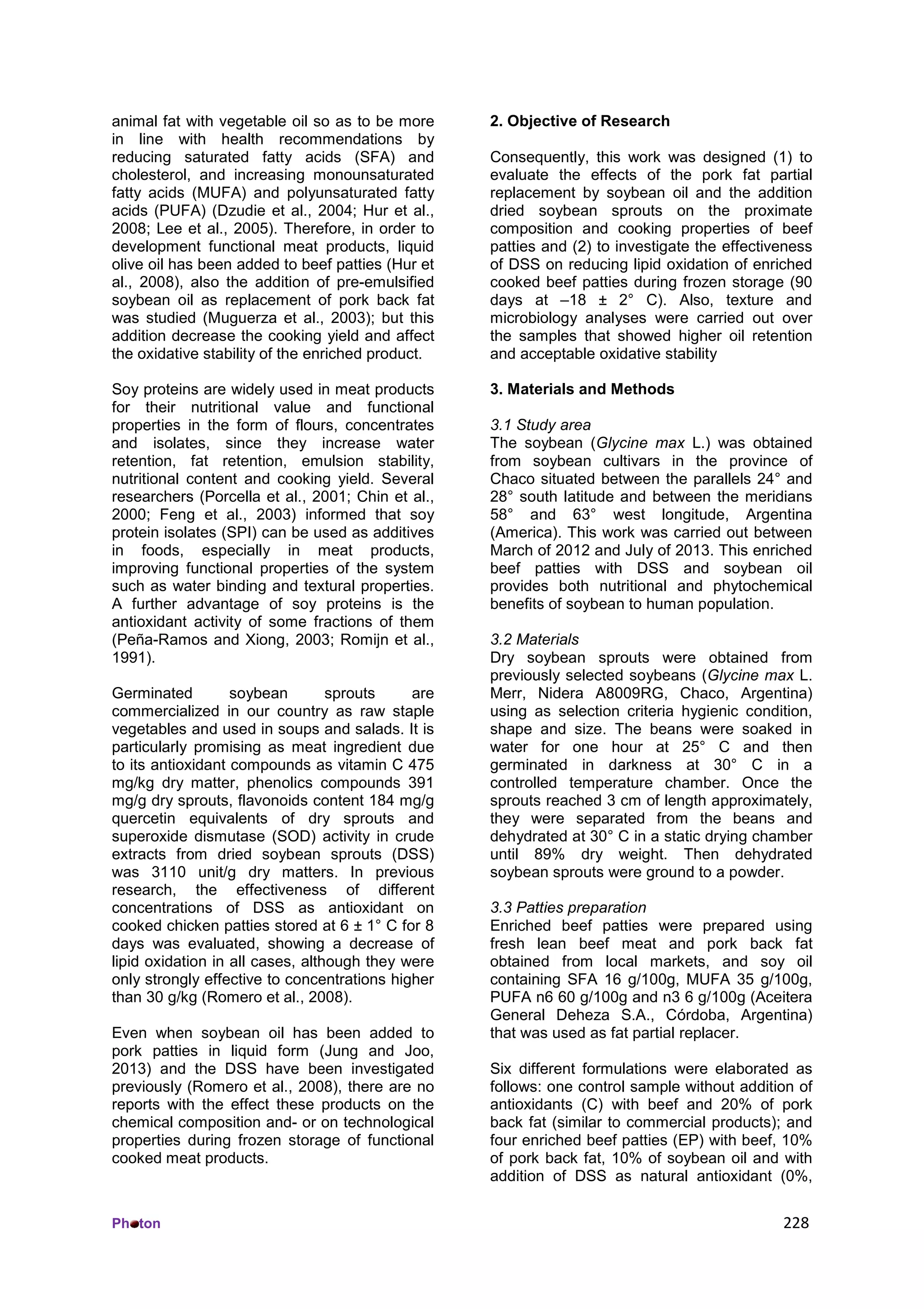 This document summarizes a research study that evaluated the addition of dry soybean sprouts to enriched beef patties containing soybean oil. The study aimed to investigate how dry soybean sprouts affected the quality characteristics and oxidative stability of the patties during frozen storage. Results showed that adding 1% dry soybean sprouts improved the protein and carbohydrate content of the patties. It also enhanced moisture and oil retention after cooking. Patties with 1% dry soybean sprouts had healthier lipids and lower cooking losses. The sprouts also helped maintain microbiological stability and texture during frozen storage. Therefore, dry soybean sprouts can protect enriched beef patties from lipid oxidation without negatively impacting quality.