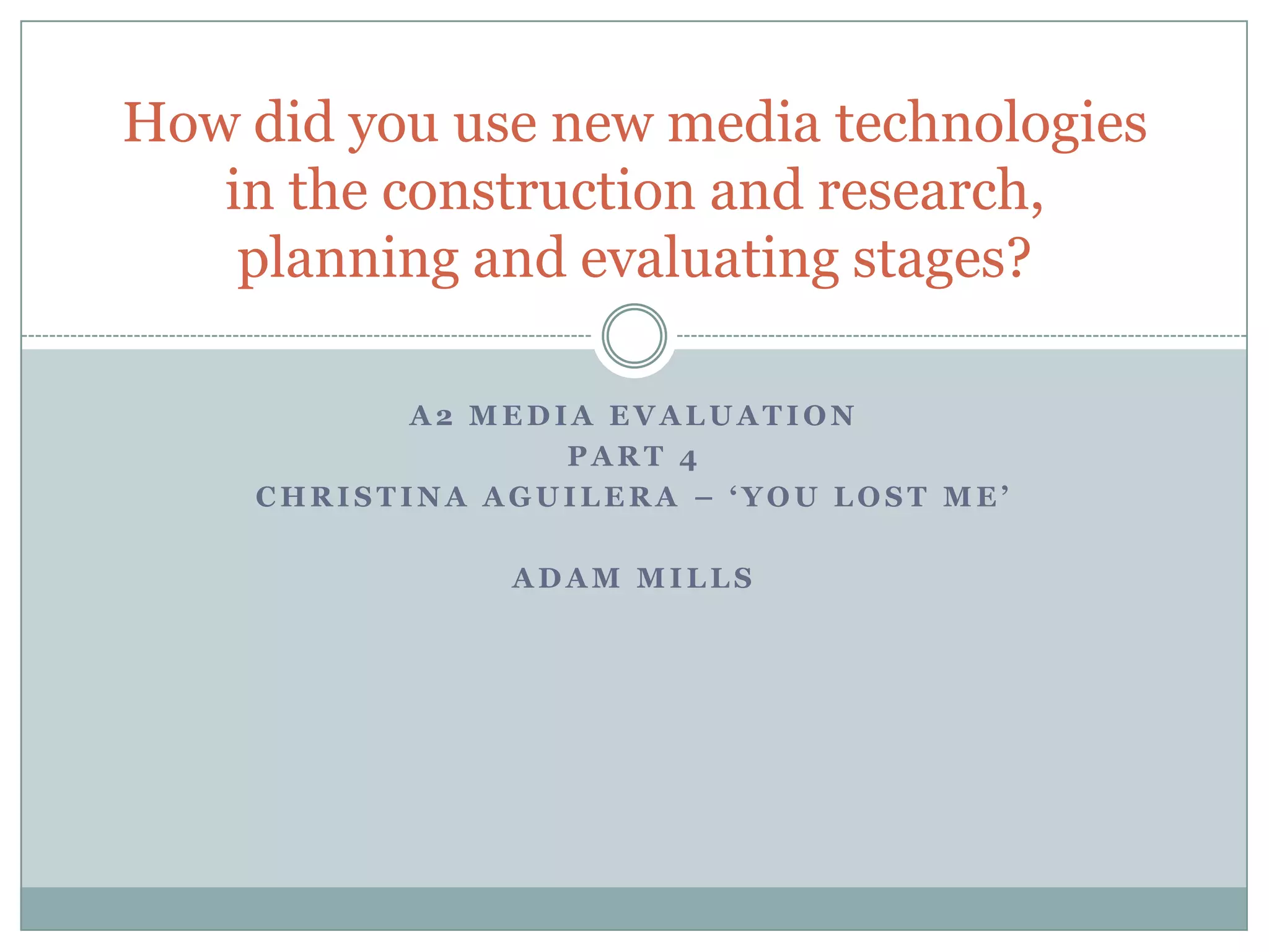 The document discusses the production of a music video for the song "You Lost Me" by Christina Aguilera. It describes the use of iMovie '09 for video editing, including techniques like beat marking, ken burns effect, stabilization, and colorization. It also discusses using Serif PagePlus 11 to create ancillary materials like a digipak and advert. Canon cameras were used for video and stills. Issues with low-quality footage and bugs in the blogging platform are described. The conclusion states that an HD camera and sticking to one ancillary idea would be done differently.