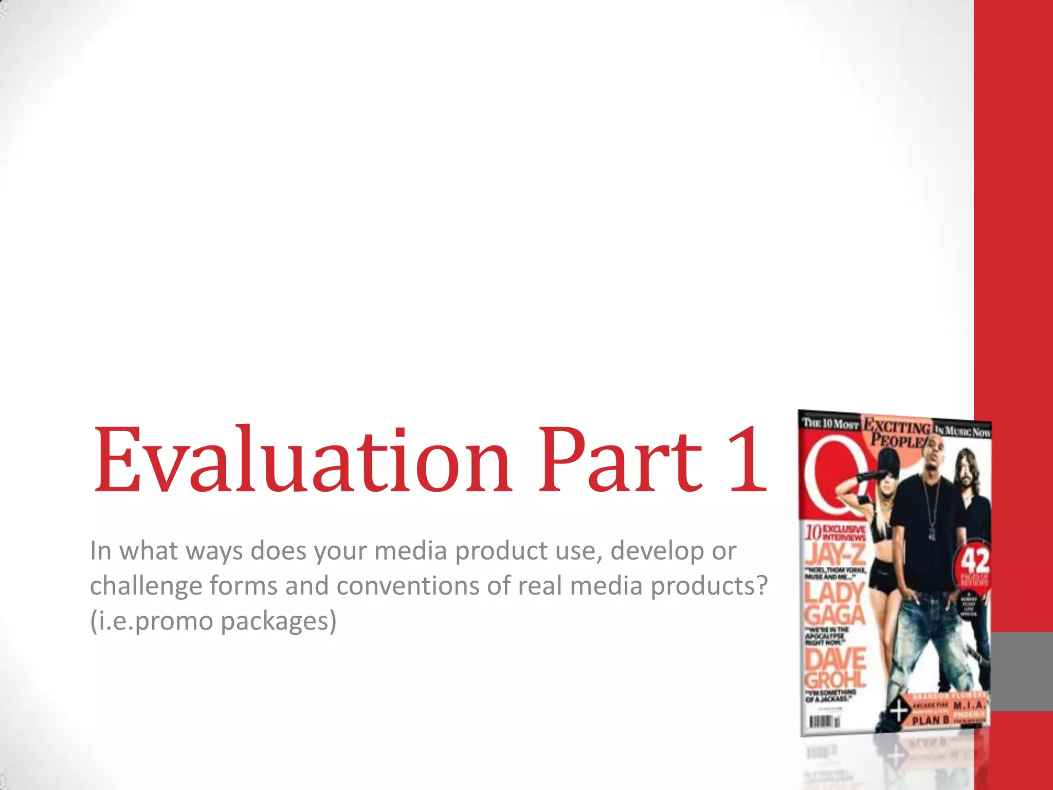 The document evaluates a media product's use of conventions in its promotion, album cover, and music video. It discusses the creative choices made, such as imagery and color schemes that reflect the album's themes and target audience, as well as the relationship between lyrics and visuals. The analysis also includes a comparison with existing media products and adherence to industry standards in formatting and design.