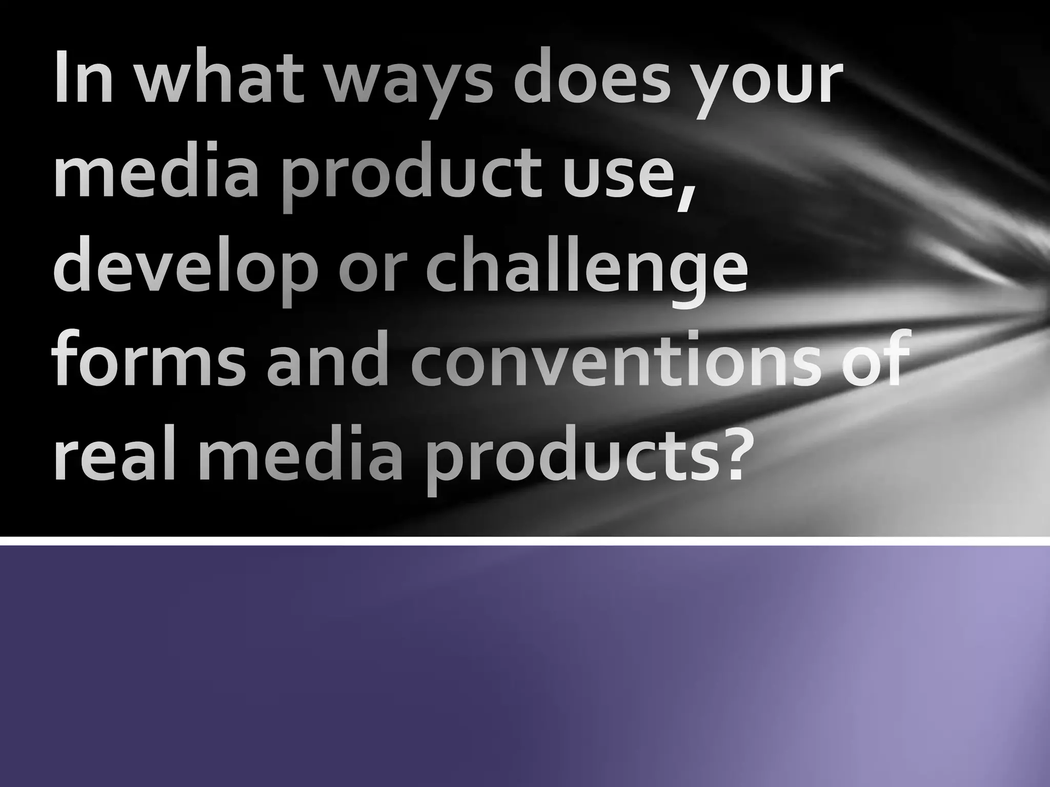 The document discusses conventions used in a music video and related media products for a pop artist. It notes ways the author's music video contrasts with the original, such as using only black and white. It also discusses how the digipak and poster relate to each other and the music video through a consistent theme and font [END SUMMARY]