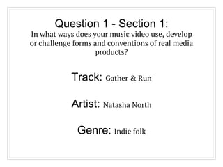 This document summarizes the ways in which the author's music video and print productions for the song "Gather & Run" use, develop, and challenge conventions of real media products.