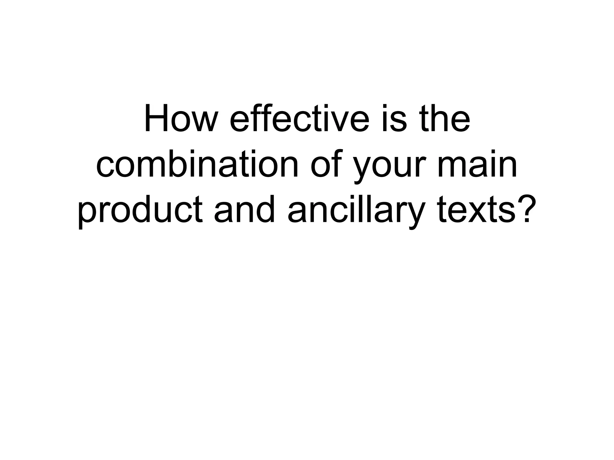 The document discusses the consistency of style across a band's main music video product and two ancillary texts: a digipak and poster. It analyzes the use of typography, layout, design, color, lighting, mise-en-scene, props, and editing to create a cohesive style and effectively promote the genre (indie/romance) across all three products. Some key aspects that helped achieve consistency included using the same fonts, similar color palettes with low-key lighting, central characters/imagery, and props that suggested the genre. However, the poster's contrasting background was criticized for breaking consistency with the other pieces.