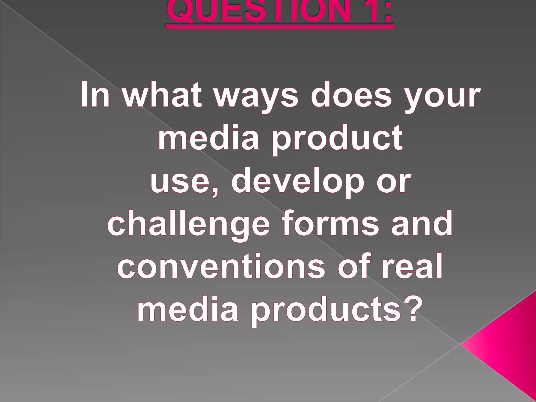 The document discusses the process of analyzing existing magazine products to identify common codes and conventions. These were then researched further and included in a coursework on the topic. Questionnaires and interviews with the target audience helped inform the development of sample magazine layouts that incorporated typical codes and conventions. For a preliminary student magazine task, conventions like a masthead, pug, and headteacher's note were included, while not having a barcode challenged conventions. For the main teen pop music magazine task, conventions like models, lighting, masthead, and girly fonts and colors were incorporated based on the target audience of young girls. Producing magazines adhering to typical codes and conventions appeals to the intended audience and helps gratify their needs per