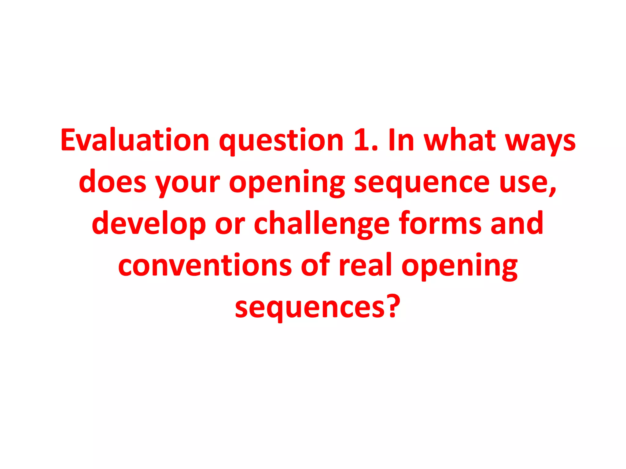 1) The document discusses the opening sequence's use of characterization, setting, genre, and narrative structure to develop conventions of the horror genre.