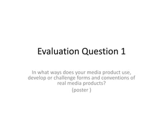 The poster challenges conventions of real media posters in several ways. It does not include images of the actors, instead only mentioning their names. The font, background image, and color scheme were chosen to suit the horror genre. The tagline "How well can you play?" relates to the title in a punning way and directly addresses the target audience. Placement of credits and adding a URL link where audiences can find more information also develop conventions. While some conventions are followed, like hierarchical actor names, the poster aims to intrigue audiences through its ambiguous and sinister style.