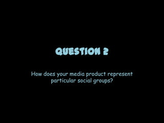 The document discusses how the media product represents various social groups through its characters. It represents: