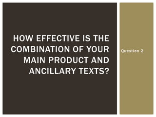The document discusses the effectiveness of combining the main product (a horror film trailer) with ancillary texts (a poster and magazine front cover).