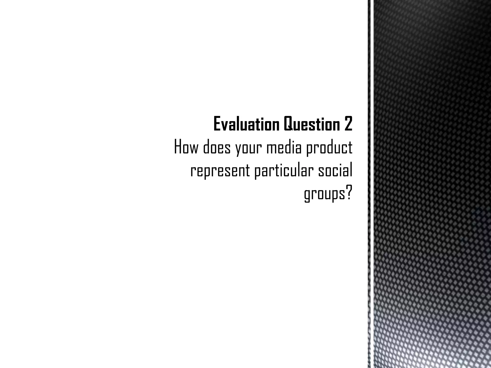 The document summarizes how the author represented different social groups in their rock music magazine targeted at 14-19 year olds who enjoy rock music. Specifically, the author focused on representing the "Indie Rock" social group through imagery and content on the cover and inside pages that embody styles and interests associated with that group, such as fashion choices and enjoyment of concerts. The author also included representation of other related groups like "Rockers" to broaden the audience.