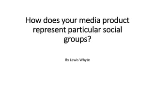 The document discusses how the author's R&B music magazine represents various social groups. It represents urban areas as R&B music often describes the struggles artists faced growing up in urban environments. It portrays the "hoodie" subculture as hoodies are strongly associated with R&B's "thug life" image. While R&B originated from black/African American culture, the magazine features a white British male model to show that R&B has expanded beyond one race or ethnicity. It targets an audience of 16-21 years old by featuring a 17-year old male model. The magazine mainly features male artists to focus on classic male R&B while acknowledging there is also a women's R&B genre