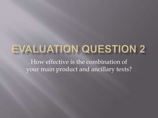 The document discusses the importance of maintaining a consistent style, or "house style", across multiple promotional products for a film. This includes using similar or identical fonts, color schemes, graphic elements, and themes across a teaser trailer, movie poster, and magazine cover. Maintaining consistency helps audiences instantly recognize that the different products are all promoting the same film and strengthens the film's overall brand identity.