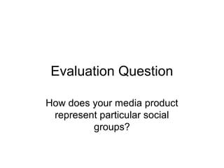 The document discusses how a media product represents social groups through its characters. It focuses on one character seen briefly at the end of the opening sequence. He is a 17-year-old white male who is not the protagonist. While the character could be linked to the social group of teenagers, the protagonist does not provide clues about their social group. The document also notes that the product includes the stereotypical horror film trope of teenage victims to appeal to horror fans, while aiming to attract an older audience as well by not focusing on ethnicity to avoid racial stereotypes.