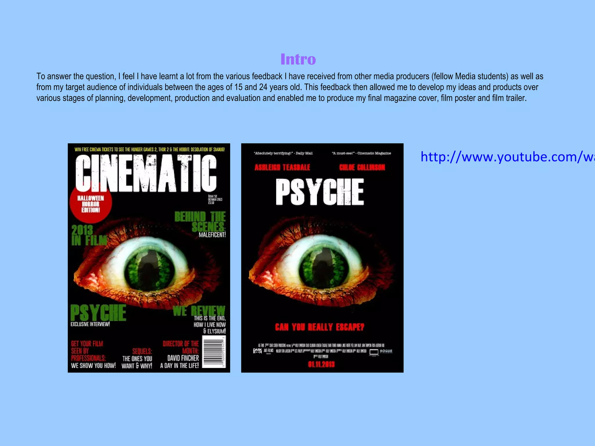 The student learned several important lessons from receiving audience feedback on their media products. Feedback on the film trailer suggested including unique cinematography and a fitting soundtrack. For the magazine cover, respondents expected images and information about the featured film. Feedback also helped the student select the film name "Psyche" and the magazine name "Cinematic". Respondents provided suggestions for improving drafts, which the student implemented in revised versions. The feedback process helped the student create higher quality, more professional final products that better met audience expectations.
