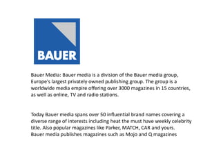 1) IPC publishes magazines monthly like the author's magazine, while Bauer already publishes similar rap/hip-hop magazines.