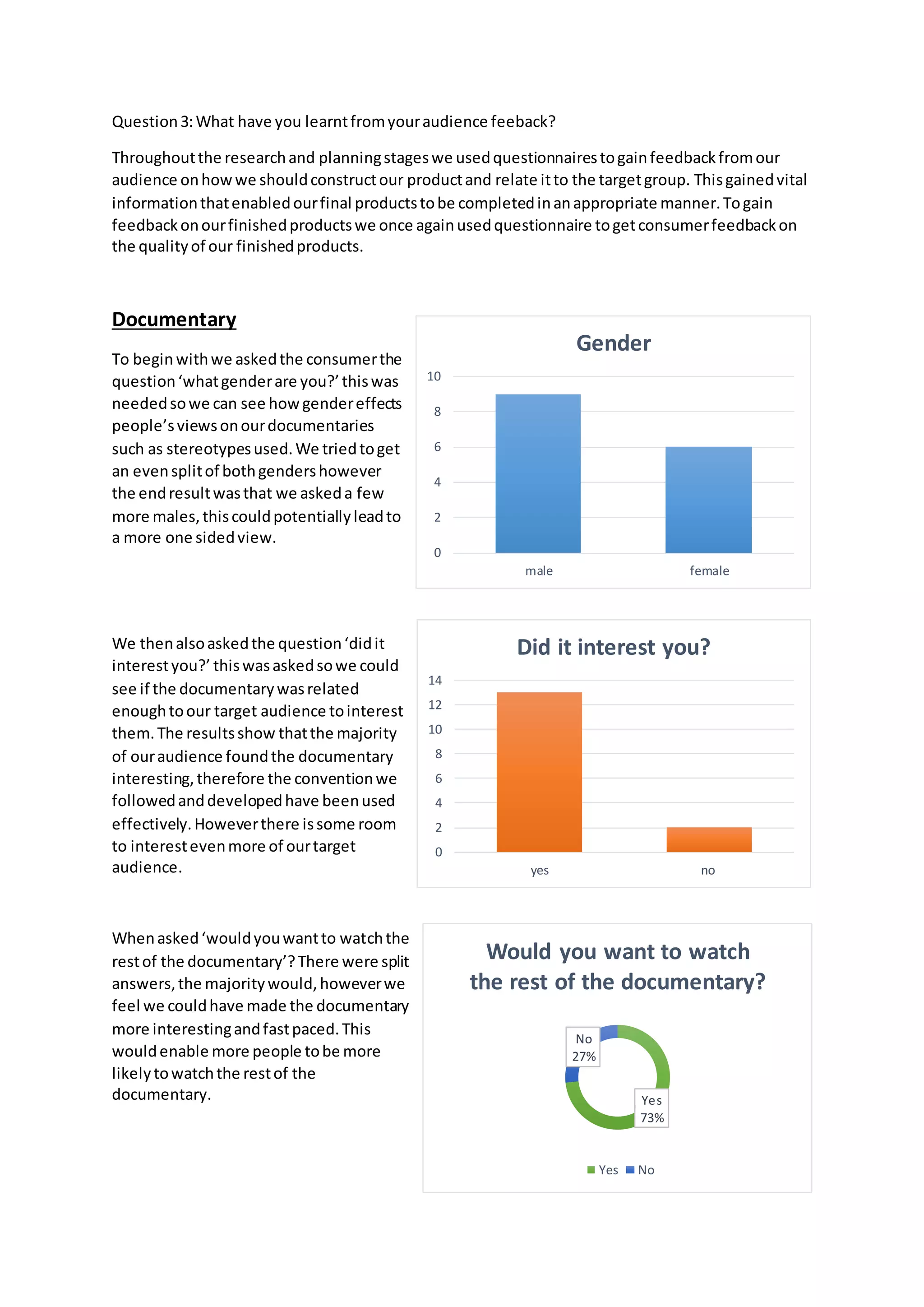 1) The majority of their audience found the documentary interesting and educational about mobile phones, though some felt it could be more engaging.