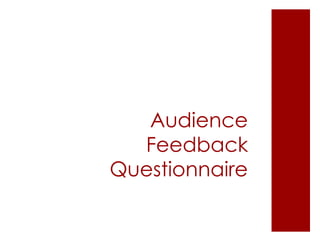 The document summarizes feedback received from audiences on a documentary about sweets. The feedback was overall positive and showed that the documentary was more informative than entertaining, though the main purpose was to inform. Some negative feedback noted that cutaways sometimes lacked relevance and the print ad was less professional than other parts. Going forward, the creator would conduct more research, improve cutaway relevance, and ensure consistent professional quality across productions.