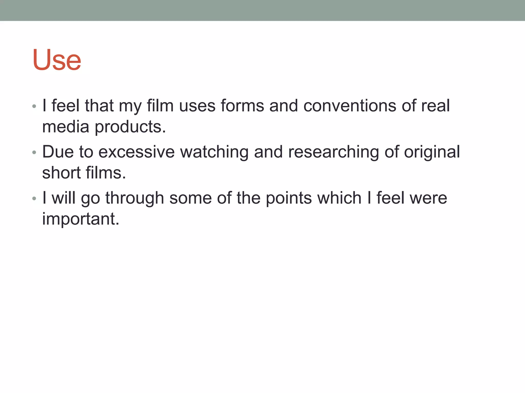 This document discusses how the filmmaker's short film uses and develops conventions of real media products. It outlines how the film employs a clear narrative structure, close-ups to convey emotion, a relatively slow pace to build tension, and stereotypes to help viewers quickly understand the characters. Overall, the filmmaker aimed to follow conventions like these found in other short films in order to effectively tell the story in the limited time frame.