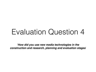 YouTube was used for research, inspiration, and sharing work. Prezi and presentation tools allowed for organizing information. Photoshop skills like cloning were used for image editing. iMovie enabled editing techniques like overlays. Social media like Facebook spread awareness of the finished video. Various online platforms facilitated sharing work and gaining influence from other creations.