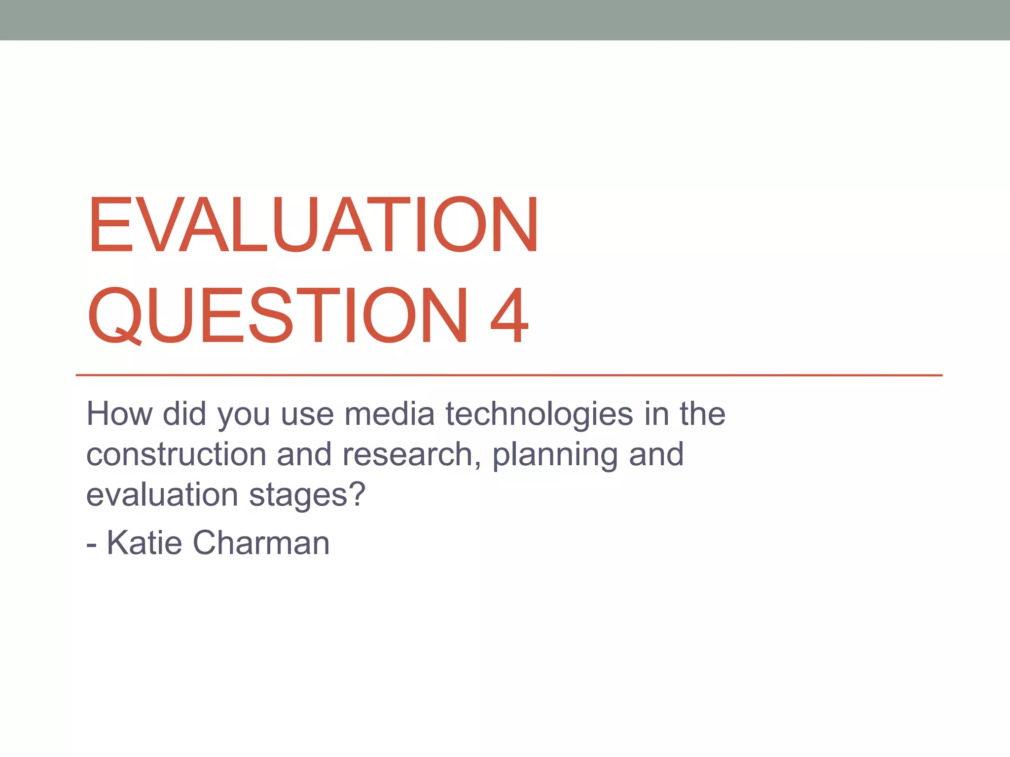 Katie Charman used various media technologies in the construction, research, planning and evaluation of her project.