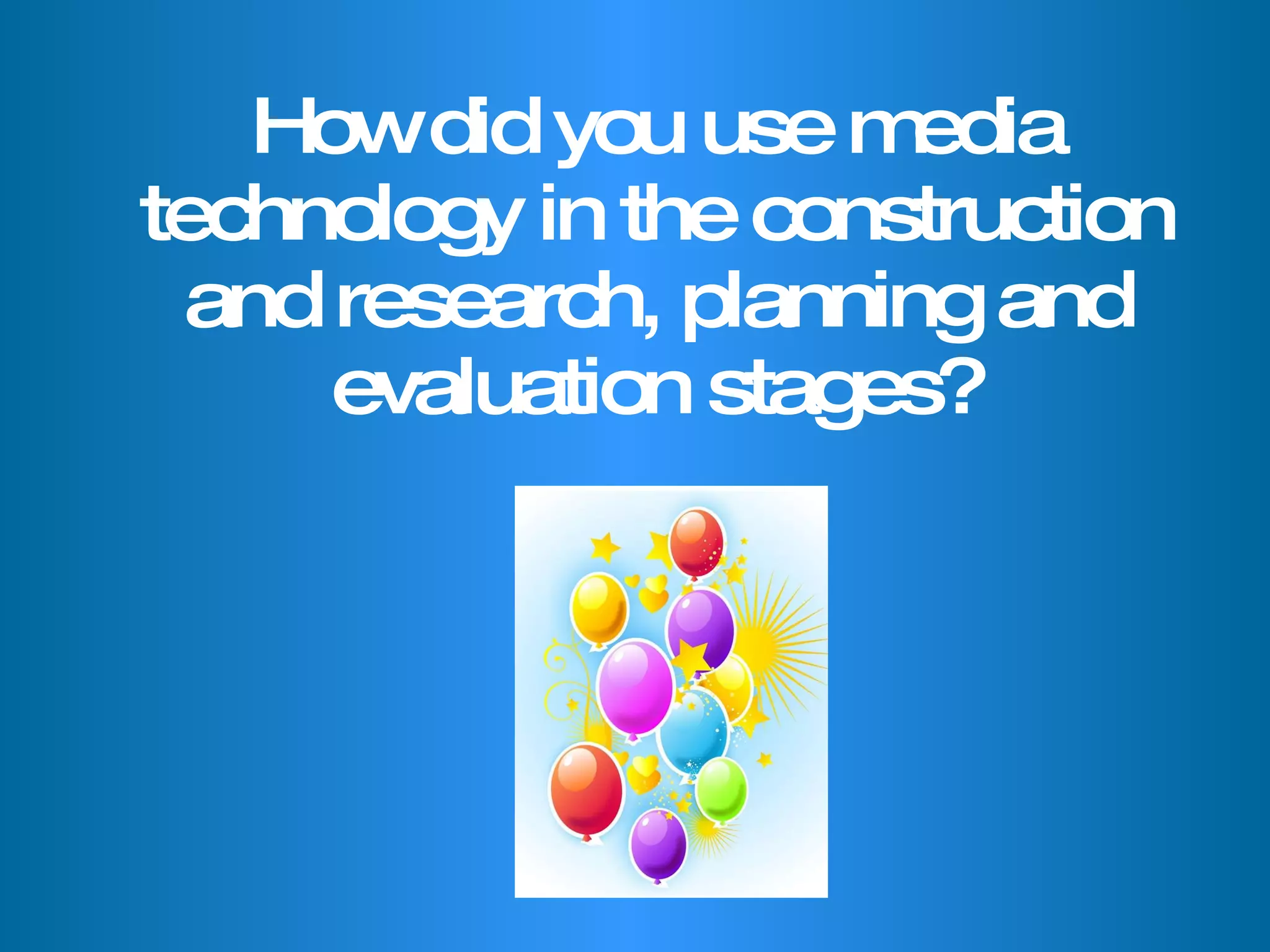 The document discusses how various media technologies were used at different stages of planning and producing a short film. Microsoft Excel was used to create questionnaires for primary research. Storyboards were drawn by hand and scanned for planning shots. Windows Movie Maker and iMovie were used to storyboard scenes and add text overlays for character profiles. Social media, websites, and DVD extras provided ideas for secondary research. GarageBand was used to compose original music scores.