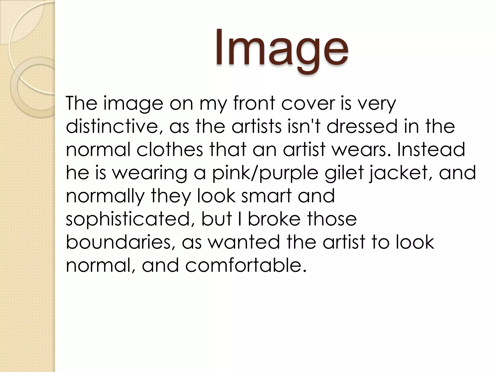 - Using a distinctive, non-traditional cover image of the artist in casual clothes to look approachable.