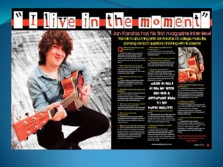 The document discusses ways in which the magazine cover and contents page address the target audience of 16-25 year old rock music fans. Bright colors, playful fonts, free content and prizes are used on the cover to attract attention and stand out. The contents page uses consistent colors and styling to create a house style while featuring a variety of rock artists, images and festival information to appeal to different types of fans. Throughout the magazine, the tone, language, colors and design elements are tailored to the needs and interests of the target readership.