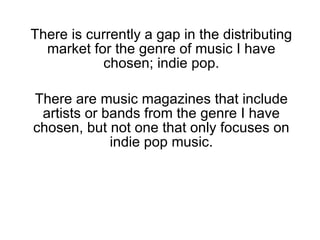IPC Media would be a suitable media institution to distribute the author's indie pop music magazine. IPC Media currently publishes NME, a popular UK music magazine that focuses specifically on music and features many indie pop artists. While magazines like Blender and Maxim were deemed unsuitable because they cover multiple genres and include sexual imagery, NME's content and target genre alignment makes it comparable to the author's proposed magazine. Therefore, IPC Media may be likely to also distribute an indie pop-focused magazine.